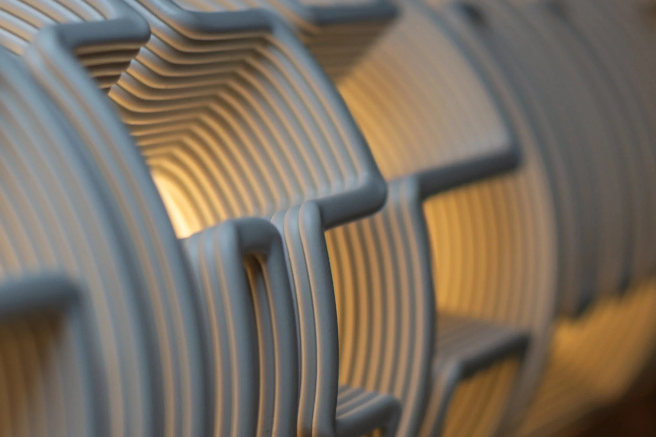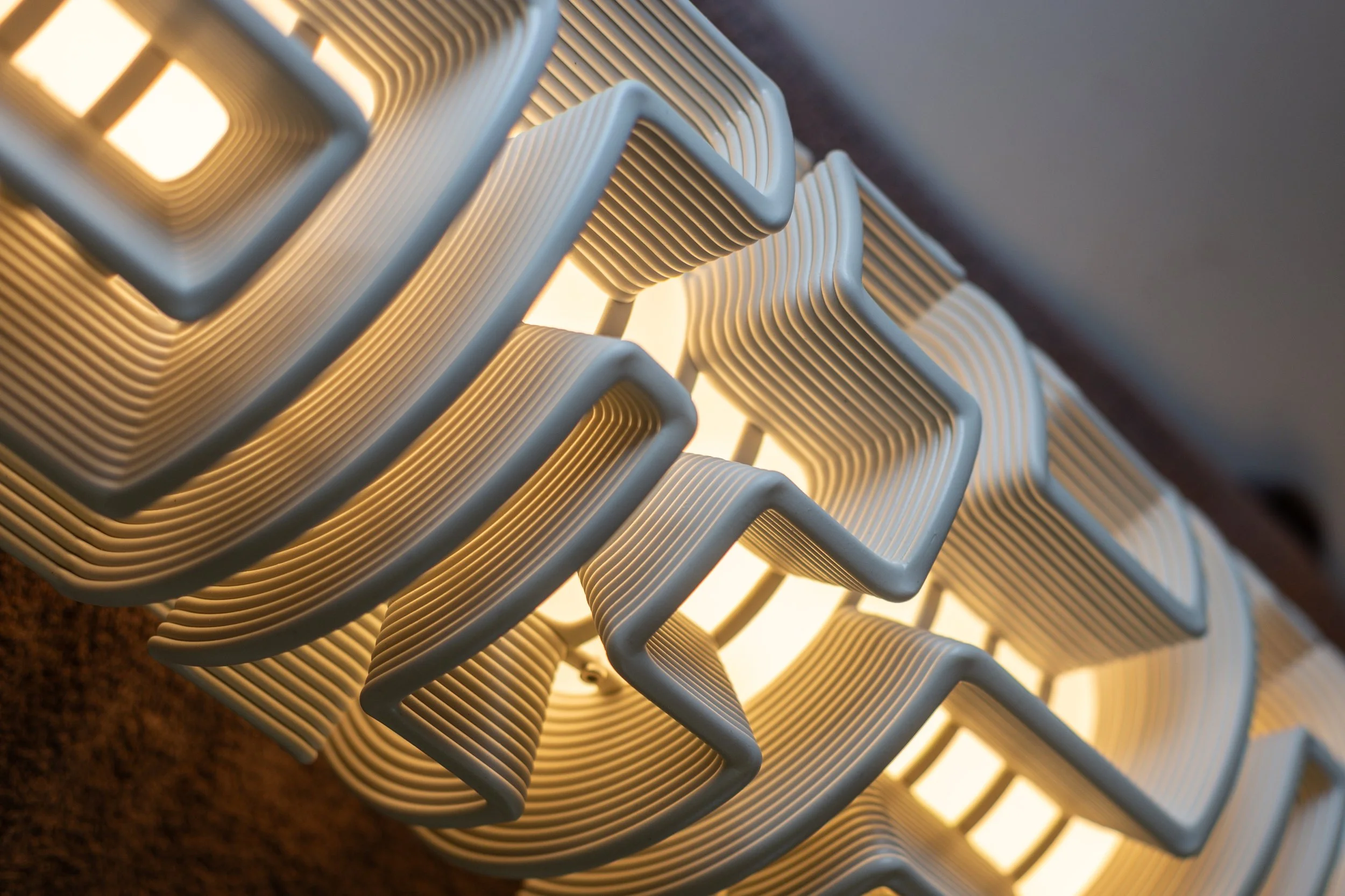 No two Maze Lamps are alike. Each one is printed from a seamless pattern that is uniquely generated and extruded in rotation, creating a path that never appears twice. Every lamp becomes a unique piece in its own right.